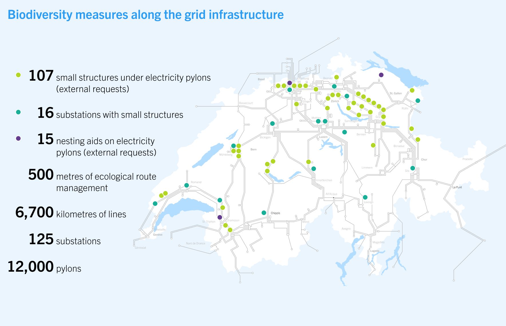 | Rise in forest fires due to increasing dry weather | Threat to infrastructure from forest fires | • Vegetation management (see chapter «Environmental protection, biodiversity and circular economy») |